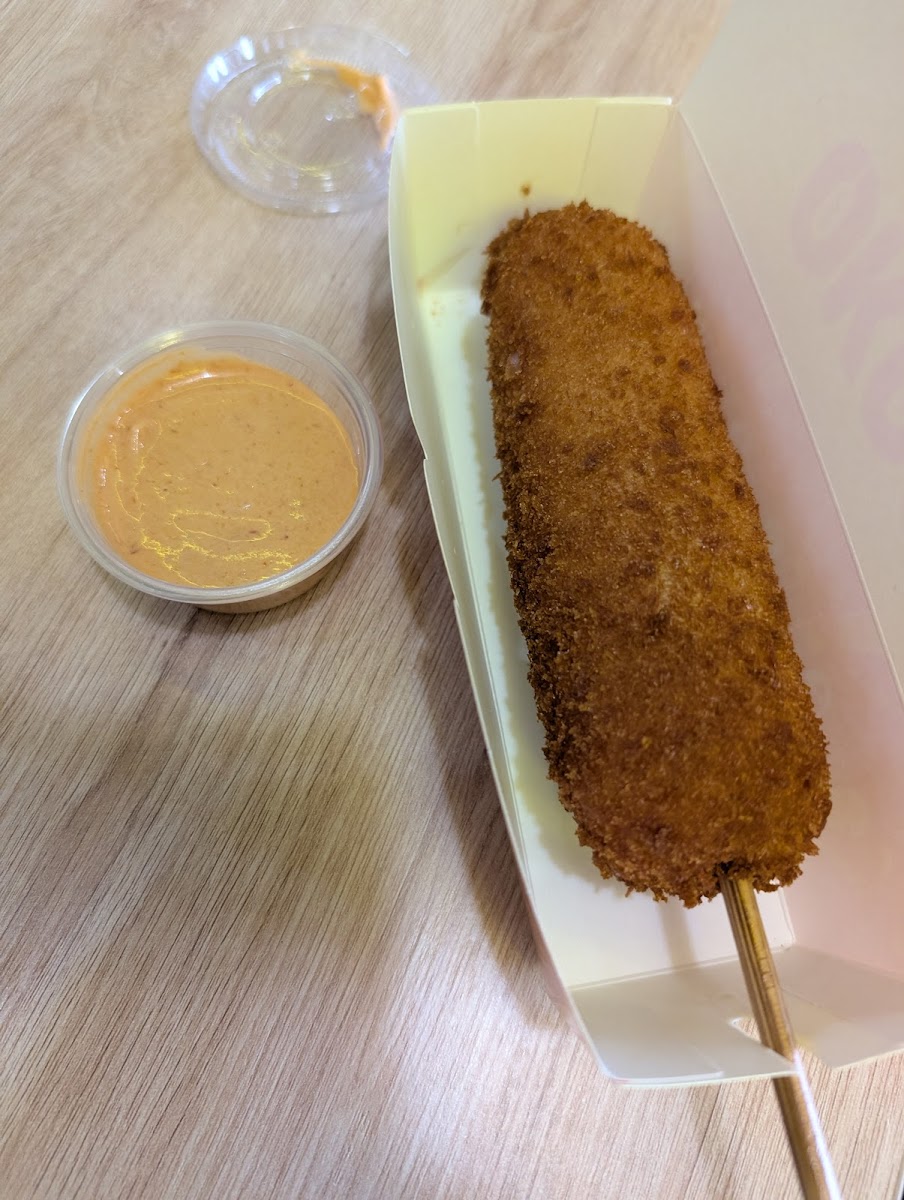- The menu also features unique savory items, such as halal Korean-style corn dogs topped with spicy mayo and mustard, adding an unexpected but enjoyable counterpoint to the sweets.
