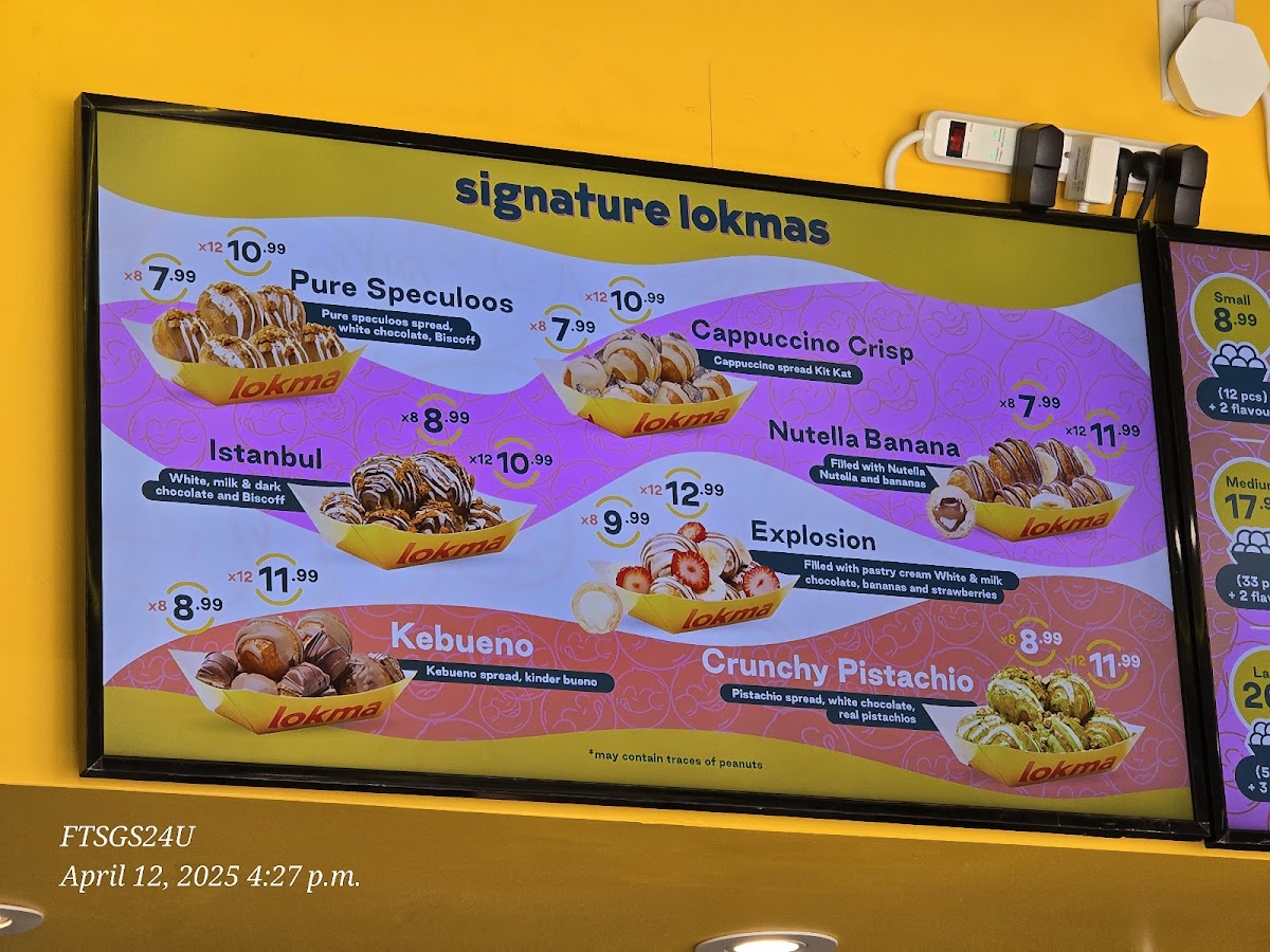 - Lokma Cups: A selection of individually crafted strawberry cups combining flavors such as Dubai chocolate, white chocolate, Bueno, Biscoff, and Nutella. These items are suitable for dessert or casual snacks.