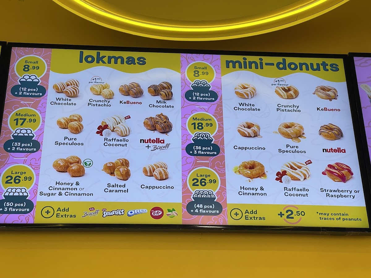 Additional highlights include desserts such as the Banana Split and Lokma Cappuccino Crisp, supporting a range of dessert choices including chocolate and fruit-based items. The menu is primarily suited for dessert enjoyment, casual dining, or quick indulgences during coffee breaks. It provides a mix of made-to-order items with fresh ingredients, allowing for both immediate consumption and casual visits.